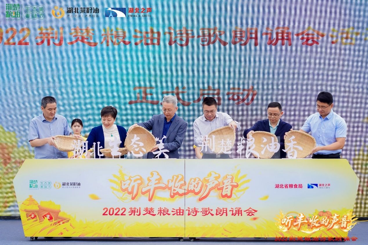 荆楚大地,沃野飘香。9月24日上午,听丰收的声音——2022荆楚粮油诗歌朗诵会在武汉举办,农民诗歌爱好者等同台朗诵“荆楚粮油”诗篇,用诗歌表达喜悦,用歌舞喜迎收获,共赴一年一度的丰收之约。